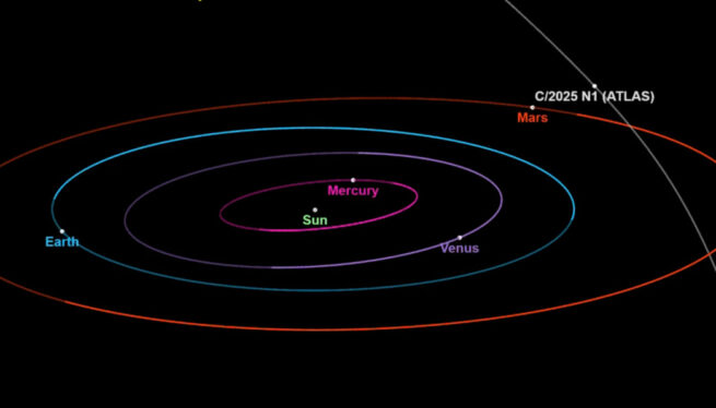 Объект 3I/ATLAS, прилетевший из-за пределов нашей звездной системы, 3 октября подлетит к Марсу на расстояние около 28 млн км. Далее он пересечет орбиту планеты, а 29 октября приблизится к Солнцу — на дистанцию 200 млн км. После этого начнется его выход из Солнечной системы.