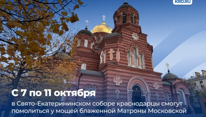 С 7 по 11 октября в Свято-Екатерининском кафедральном соборе Краснодара будет находиться ковчег с частицей мощей блаженной Матроны Московской.